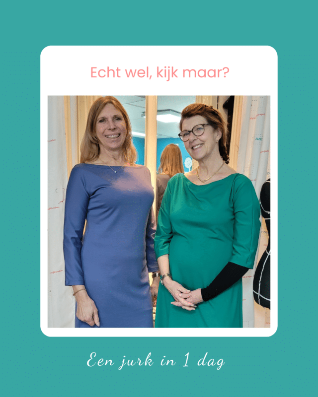 Oké geen probleem, want als de basis goed is, kun je eenvoudig je mouwlengte, je halssoort of je roksoort aanpassen. Dat is een kwestie van 5 minuten om je patroon aan te passen en je kunt weer verder. Je hoeft dus echt niet telkens helemaal van voor af aan te beginnen!